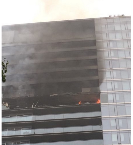 目擊者寧先生說早晨5點(diǎn)多聽到了密集的消防車響聲,才發(fā)現(xiàn)18樓起火了。消防車到的挺快的,但是樓層太高了,云梯一時(shí)夠不到,消防部門一直在想辦法,著急啊。