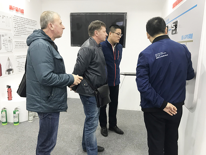 華神消防在不斷開拓和鞏固國內(nèi)市場的基礎(chǔ)上,積極拓展海外市場。2018年3月12日,來自烏克蘭的三位客戶來到我公司進(jìn)行參觀考察??腿嗽?/span>副總周斌和銷售經(jīng)理陪同下,參觀了華神消防展廳,并現(xiàn)場觀看了熱氣溶膠防護(hù)裝置的繞障及復(fù)燃實(shí)驗(yàn),國外客戶在全方位了解公司的規(guī)模實(shí)力、研發(fā)實(shí)力及詳細(xì)的產(chǎn)品介紹后,高度贊揚(yáng)了華神氣溶膠類產(chǎn)品和新產(chǎn)品逃生瓶的可靠性及質(zhì)量等,對華神的產(chǎn)品產(chǎn)生較大的興趣并期望與公司長期合作。