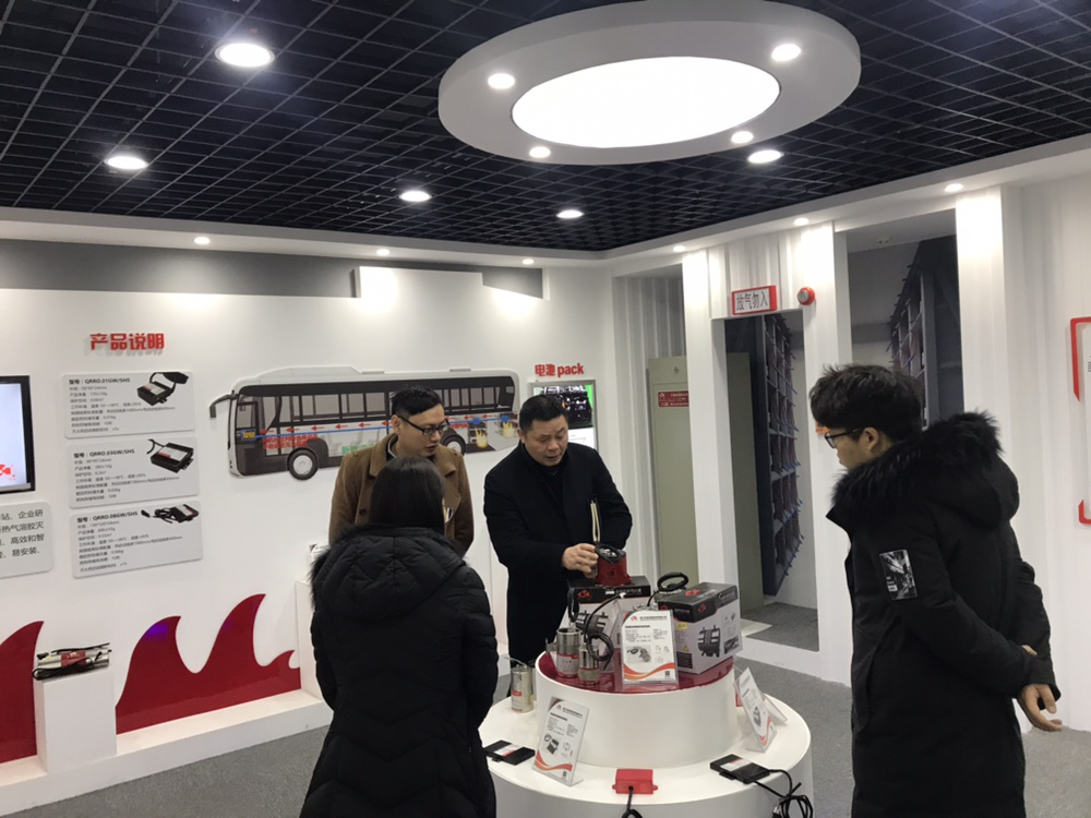 (圖2:董事長(zhǎng)周建國向?qū)徍私M介紹華神消防主要產(chǎn)品)